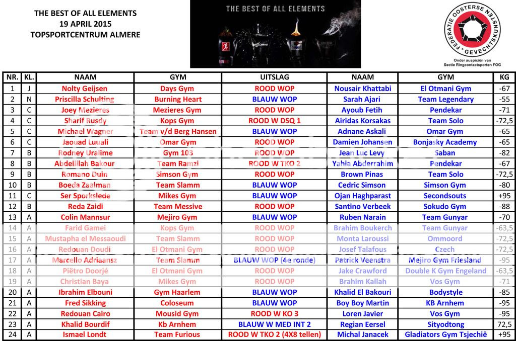 UITSLAGEN 'THE BEST OF ALL ELEMENTS' - ALMERE 19 APRIL 2015